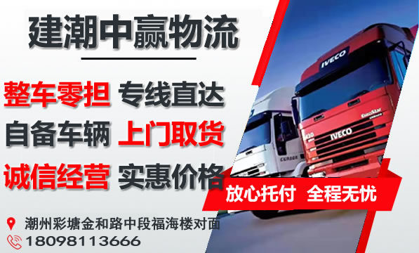 潮州到惠州物流专线是建潮中赢物流主营重点物流线路之一,提供4.2-17.5米整车包车运输,零担专线,可上门取货,量大免费提送货;潮州到惠州货运专线价格实惠,欢迎来电咨询。